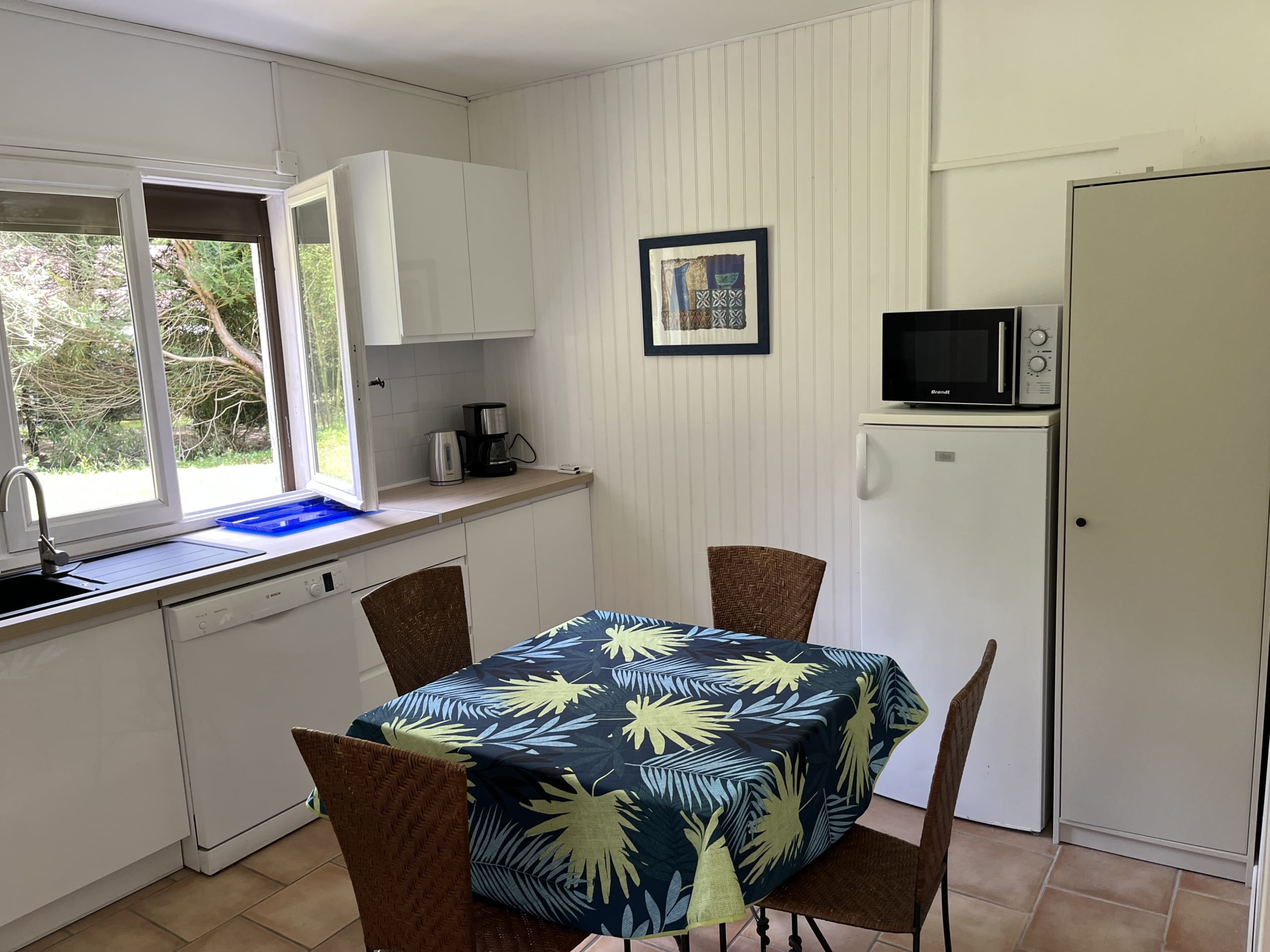 Appartement 36 m2 de plain-pied, capacité 4 personnes, 1 chambres lit 140 cm, 1 canapé clic-clac, chauffage, rafraîchisseur d’air, cuisine indépendante, lave vaisselle, micro-onde, four, réfrigérateur, congélateur, lave linge, douche, télévision, WIFI. Option ménage, location de linge, animaux non acceptés, jardin barbecue, terrasse, parking privé.